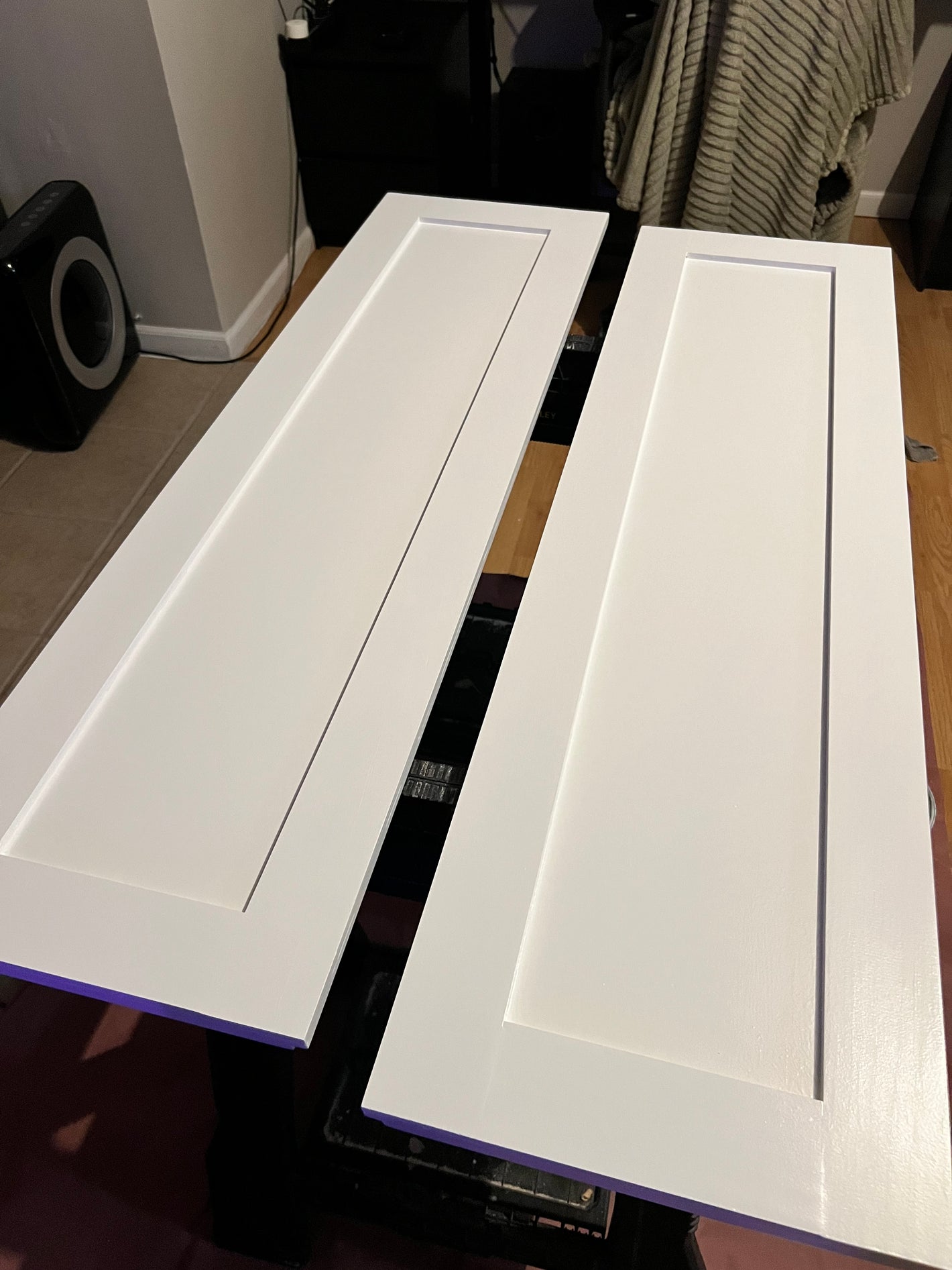 We sadly had a house fire next to this room before I could hang the doors back up. It would have been beautiful and it was hard to see days of work destroyed.