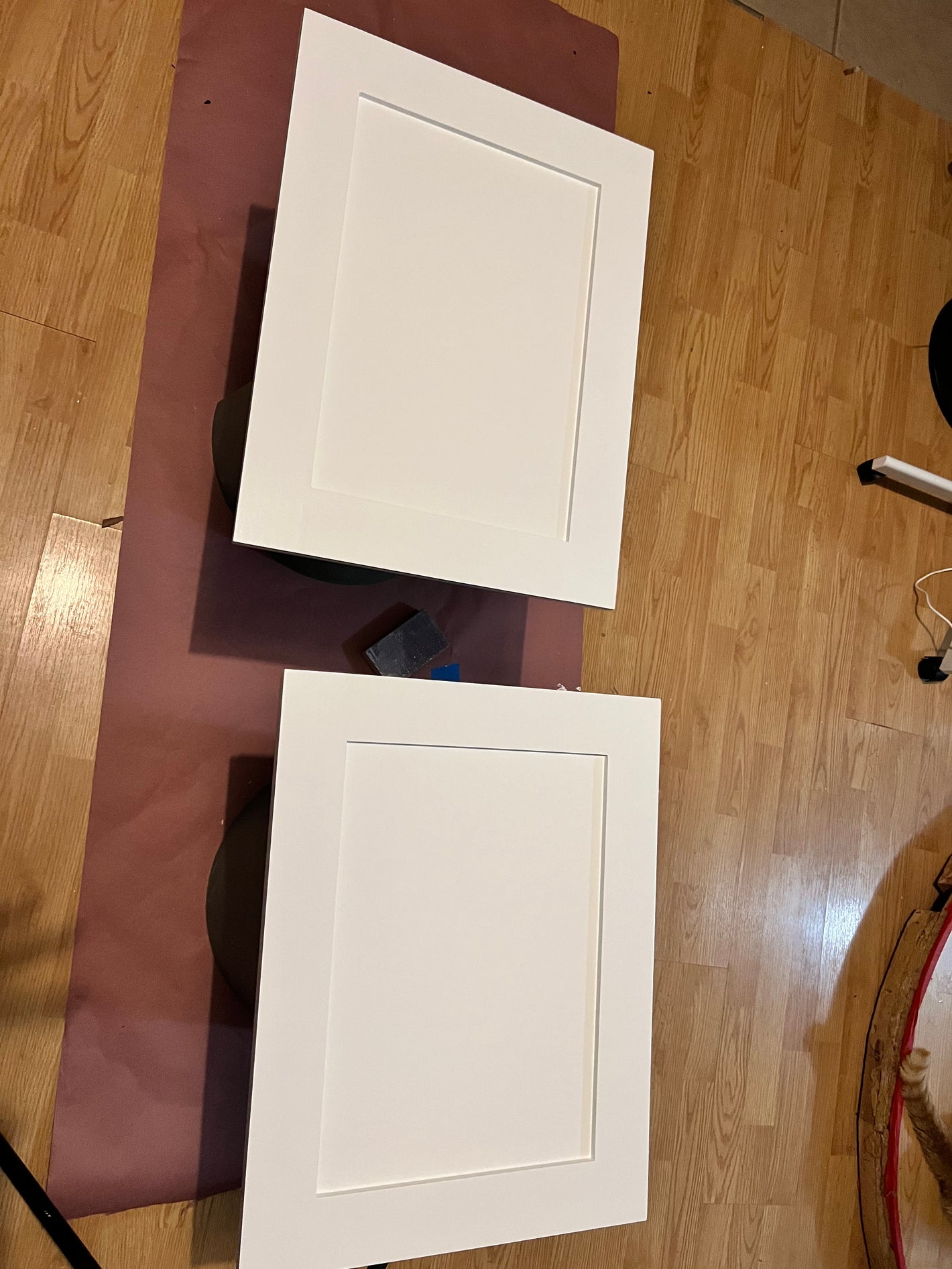 I didn't love the flat doors, so added some trim.