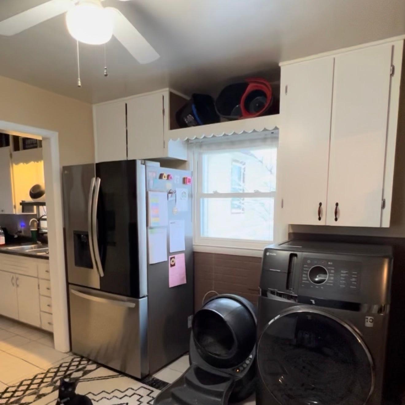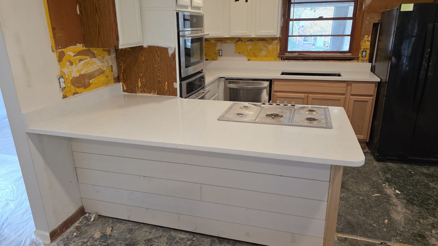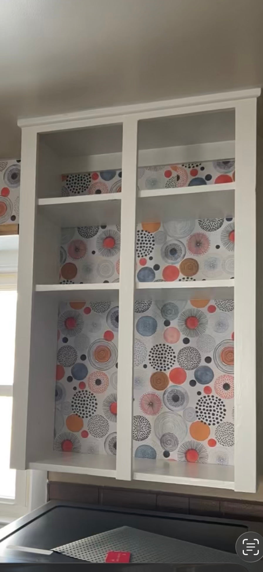 The upper cabinets were taken out and replaced with a bar. This is still a work in progress. I traveled to Atlanta to do this project, and the rest of the kitchen will be done soon!